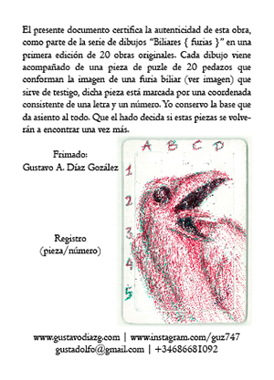 «Biliares { Furias }» es una serie de 20 dibujos para el proyecto Malasaña 24h EraVending, ARTE 24H, de la artista hispano-colombiana Mariana Leiva, donde se ofrece obras de arte originales, únicas y certificadas de artistas contemporáneos las 24 horas del día a través de un espacio expositivo atípico: una máquina expendedora.